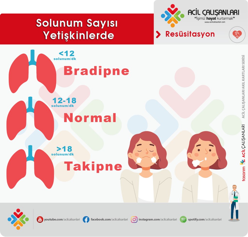 Normal erişkin bireyde, dinlenme halinde, normal solunum dakikada 12–20’ dir.